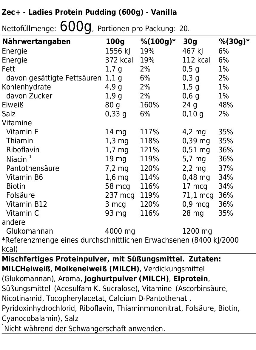 ZEC+ DAMERNAS PROTEINPUDDING (600G) VANILJ