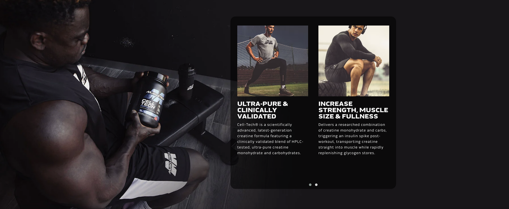 Cell-Tech har under de senaste 10 åren varit en av de mest sålda kreatin-kosttillskott på marknaden. Produkten är tillverkad för dig som vill bygga muskelmassa och öka i vikt. Om du håller på att cutta eller vill gå ner i vikt, rekommenderar vi dig att inte ta produkten på grund av dess relativt höga kolhydratinnehåll.