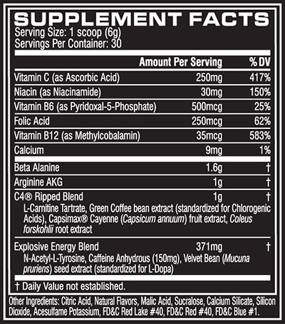C4 Ripped är en pre-workout som kombinerar den explosiva energin från C4 med fettförbrännande ingredienser. Innehållet i produkten kommer att hjälpa dig att träna hårdare samtidigt som det ökar din fettförbränning.