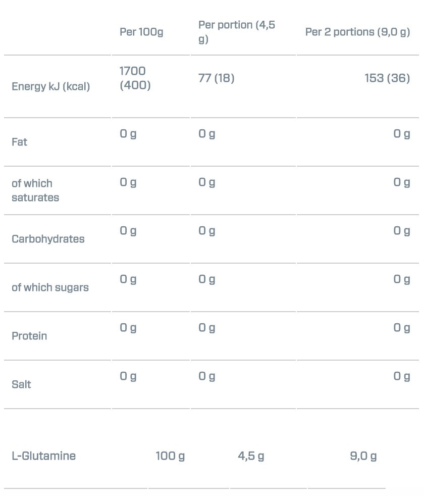 Glutamin är en av de enklaste aminosyrorna och är därför också den första som kroppen bryter ner för att skapa energi. När du konsumerar glutamin före din träning kommer du att förlänga denna process. Det innebär att du kan träna längre och hårdare utan att överanstränga. Glutamin kan också förbättra ditt immunförsvar.