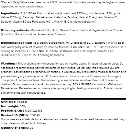 BCAA Energy kombinerar de grenade aminosyrorna BCAA med naturliga energikällor som kaffebönor och grönt te-extrakt. Produkten kommer därför ge dig en ökad återhämtning, ökad energi och bättre träningsprestation.