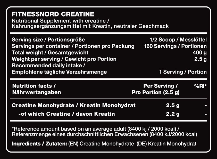 Fitnessnords kreatin är mikroniserat till en renhet på 200 mesh, vilket är den finaste kvaliteten på kreatinmonohydrat som finns.