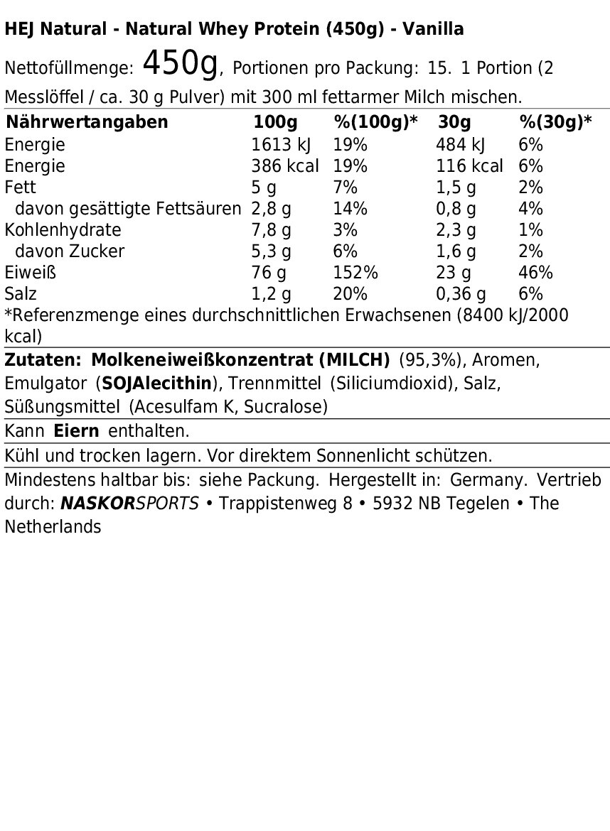 HEJ NATURAL NATURAL WHEY PROTEIN (450G) VANILLA
