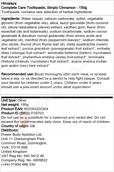 HIMALAYA COMPLETE CARE TOOTHPASTE, SIMPLY CINNAMON - 150 GRAMS