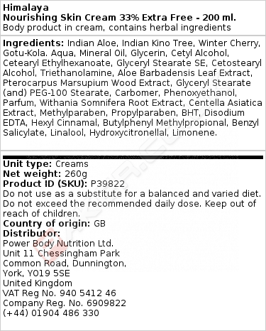 HIMALAYA NOURISHING SKIN CREAM 33% EXTRA GRATIS - 200 ML.