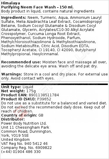 HIMALAYA PURIFYING NEEM FACE WASH - 150 ML.