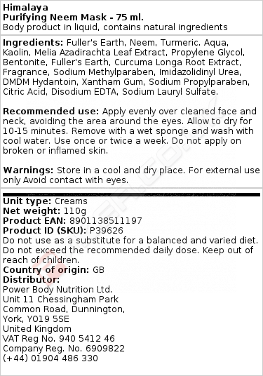 HIMALAYA PURIFYING NEEM MASK - 75 ML.