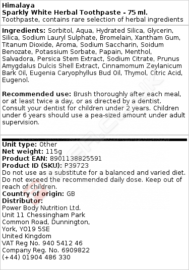 HIMALAYA SPARKLY WHITE HERBAL TOOTHPASTE - 75 ML.