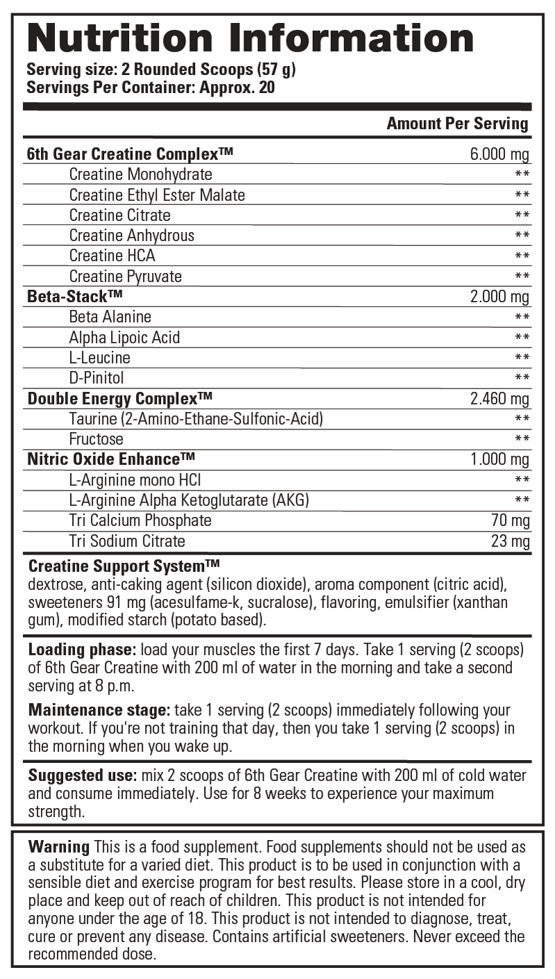 6:e Växel Kreatin innehåller även aminosyror som ger extra energi, styrka och muskelpump.