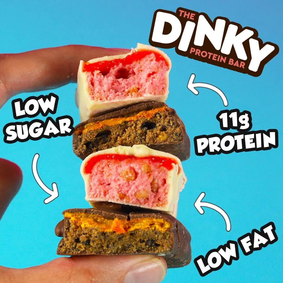Med 11g protein per 'dinky' 35g bar, är dessa barer en super läcker halvstor proteinbar som kan få plats i din ficka, gymväska, handväska osv!