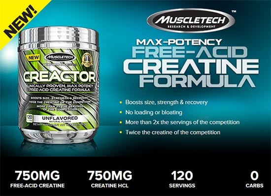 Muscletech Creactor är en effektiv och laboratorietestad kreatinprodukt för dig som vill ha maximal styrka.