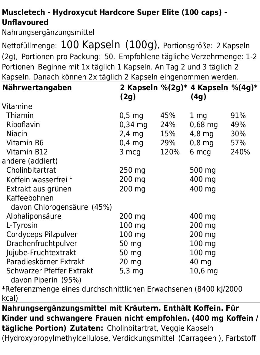 MUSCLETECH HYDROXYCUT HARDCORE SUPER ELITE (100 CAPS)