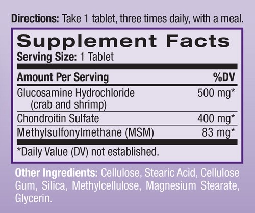 Produkten innehåller också chondroitin sulfat, som också finns naturligt i kroppen. Liksom glucosamin, är chondroitin en byggsten av stora proteinmolekyler, som ger din brosk elasticitet. Chondroitin sulfat verkar genom att det för in vätska i proteinmolekylerna, och därmed stimulerar till produktion av kollagen (bindväv).