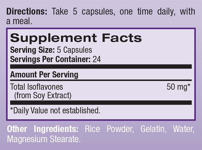 Natrol Soy Isoflavones är ett naturligt tillskott för kvinnor i övergångsåldern. Soja-isoflavoner är växtöstrogener som motverkar hetvallningar, vilket är en naturlig effekt av menopaus. Soja-isoflavonerna är framställda med GMO-fri soja.