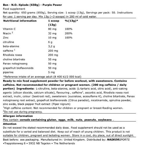 Har provat en del pwo och No-xplode är favoriten här. Man blir faktiskt immun mot koffeinet efter en viss tid och får lust att höja dosen. Detta har jag slutat med och håller mig till en scoop. Den pump jag kan få överträffar till exempel C4. Så jag tar det på grund av innehållet och inte på grund av koffein. Kompletterar med extra Beta-alanin, citrusmalat och hmb och 10g Creapure (Det finns inte tillräckligt med kreatin i).