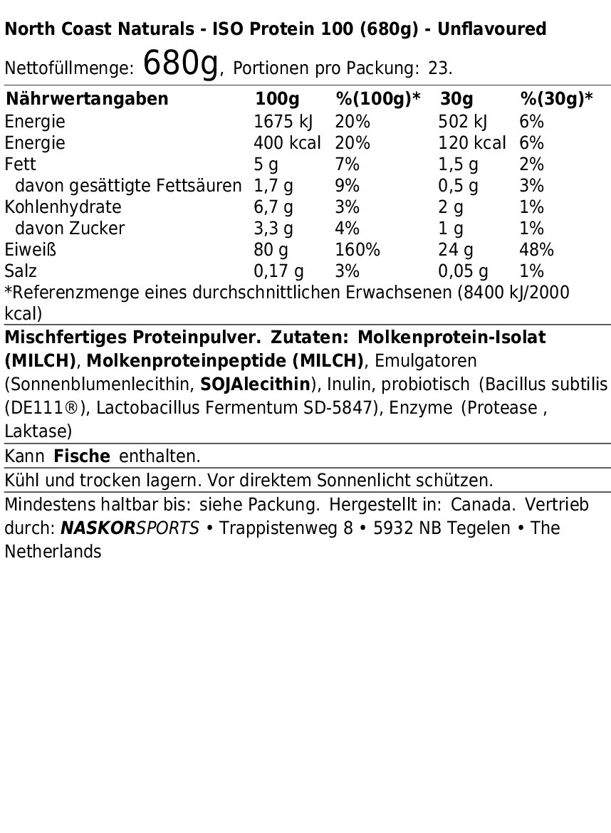 NORTH COAST NATURALS ISO PROTEIN 100 (680G)