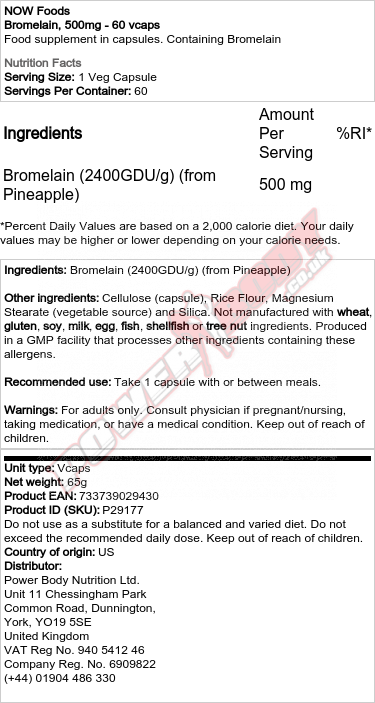 NOW FOODS BROMELAIN, 500MG - 60 VCAPS