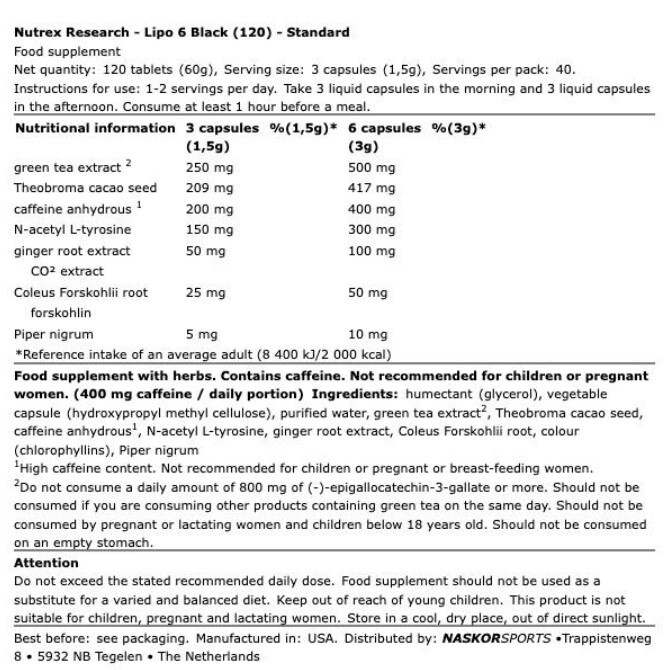 NUTREX RESEARCH LIPO 6 BLACK (120) STANDARD
