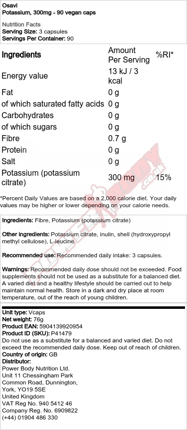 OSAVI KALIUM, 300MG - 90 VEGAN KAPSLAR