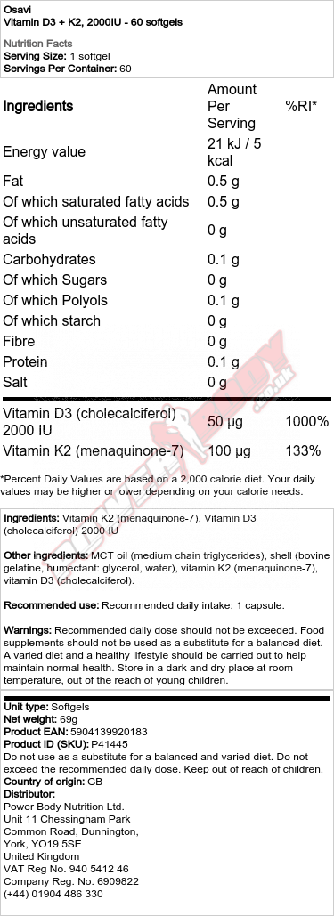 OSAVI VITAMIN D3 + K2, 2000IU - 60 SOFTGELS