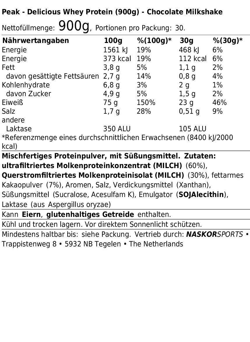PEAK DELICIOUS WHEY PROTEIN (900G) CHOCOLATE MILKSHAKE