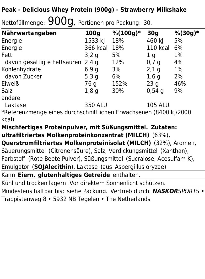 PEAK DELICIOUS WHEY PROTEIN (900G) STRAWBERRY MILKSHAKE