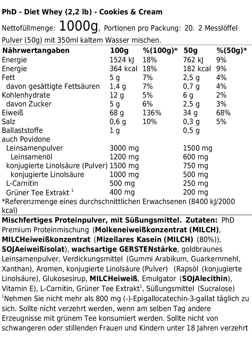 PHD DIET WHEY (2,2 LB) COOKIES & CREAM