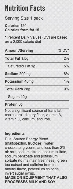 PowerBar energigel är den första gelen med kolhydrater och elektrolyter och innehåller 4 gånger mer natrium än konkurrenternas produkter. Natrium är en viktig elektrolyt som svettas ut och är den enda elektrolyten som rekommenderas att tillsättas under uthållighetsträning.