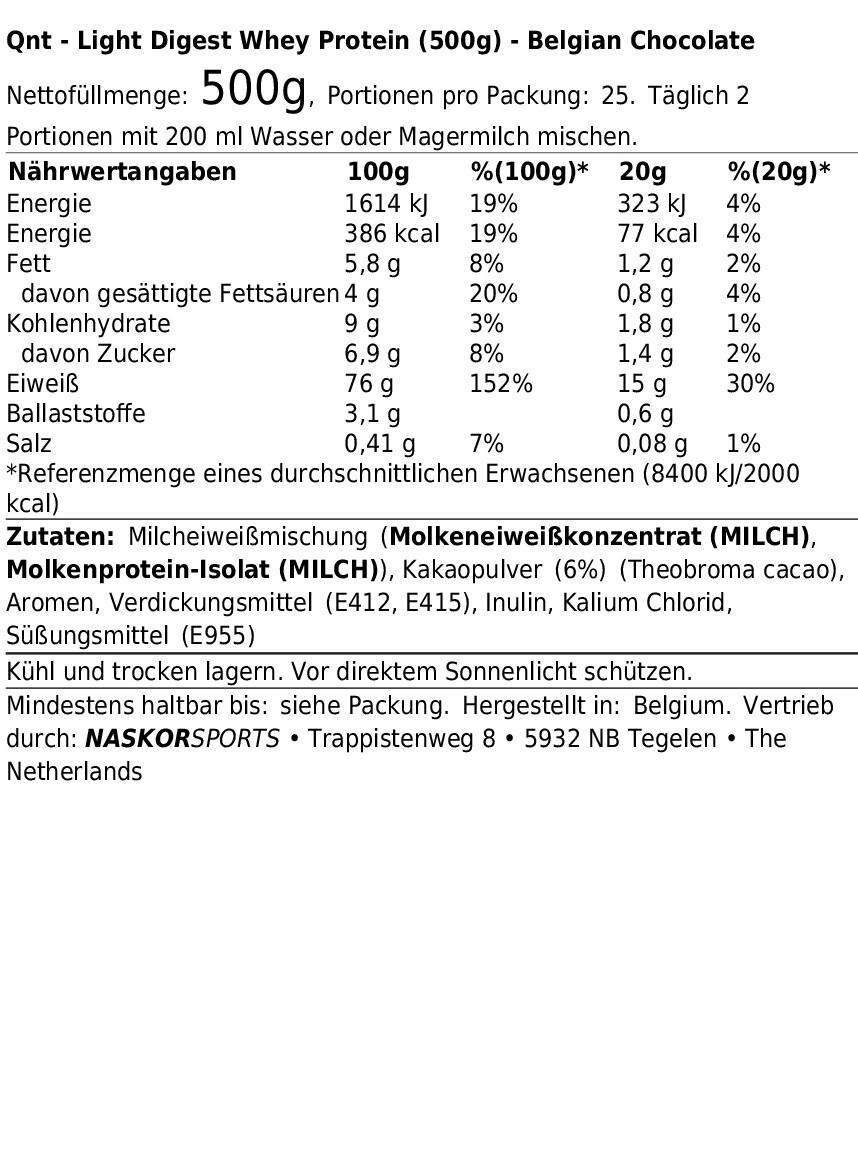 QNT LIGHT DIGEST WHEY PROTEIN (500G) BELGIAN CHOCOLATE
