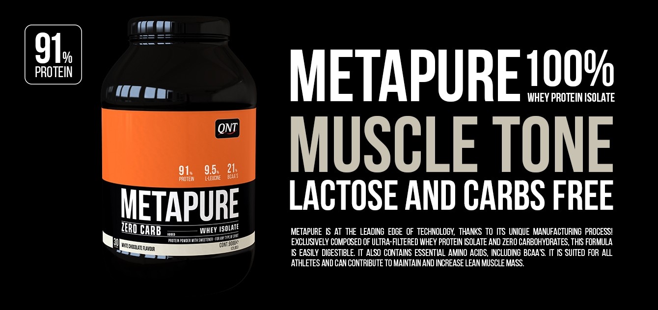 Metapure Zero Carb innehåller enbart vassleproteinisolat. Denna typ av vassleprotein innehåller protein som är renare och av mycket bättre kvalitet än traditionellt vassleprotein. Dess biologiska värde är högre än för koncentrerat vassleprotein som innehåller mer än 90% protein (torrsubstans). Dessutom innehåller denna vassle nästan ingen laktos och mycket mindre fett och kolhydrater. Det är därför idealiskt för personer med laktosintolerans som inte kunde använda det traditionella vassleproteinet.