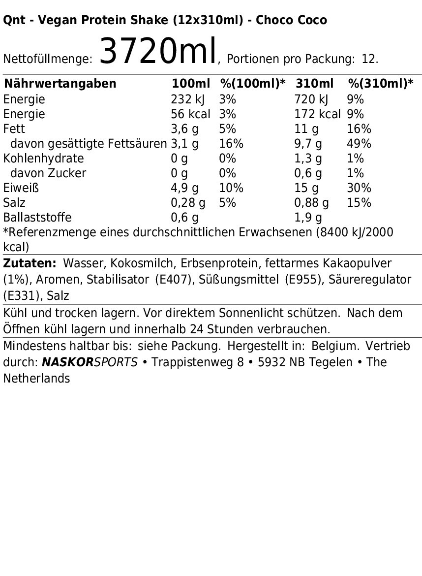 QNT VEGAN PROTEIN SHAKE (12X310ML)