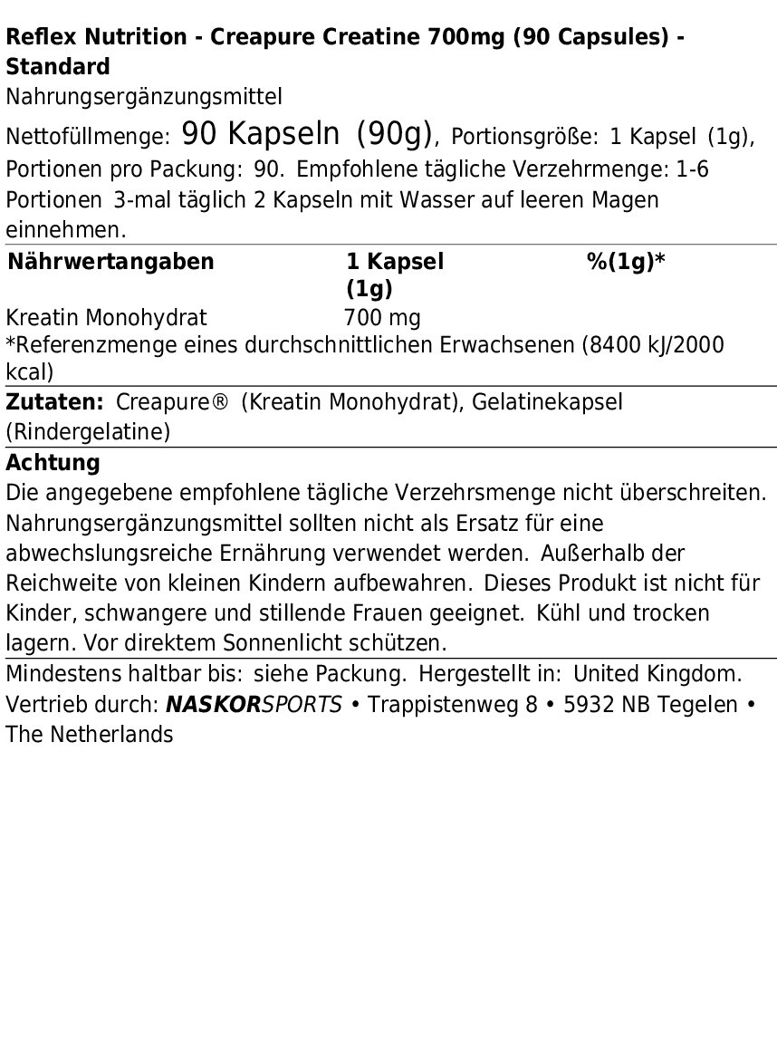REFLEX NUTRITION CREAPURE CREATINE 700MG (90 CAPSULES)
