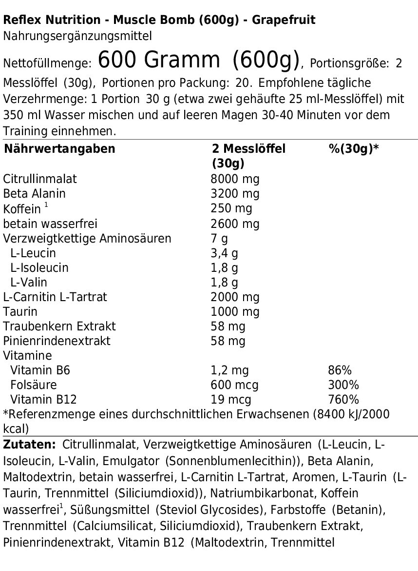 REFLEX NUTRITION MUSCLE BOMB (600G)