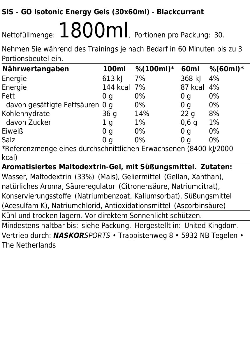 SIS GO ISOTONIC ENERGY GELS (30X60ML) BLACKCURRANT