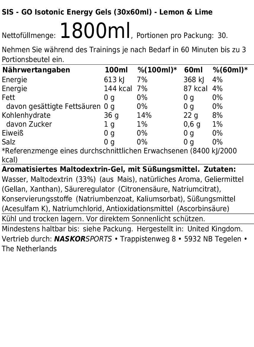 SIS GO ISOTONIC ENERGY GELS (30X60ML) LEMON & LIME