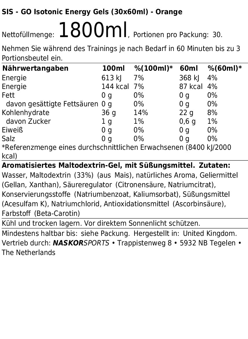 SIS GO ISOTONIC ENERGY GELS (30X60ML) ORANGE