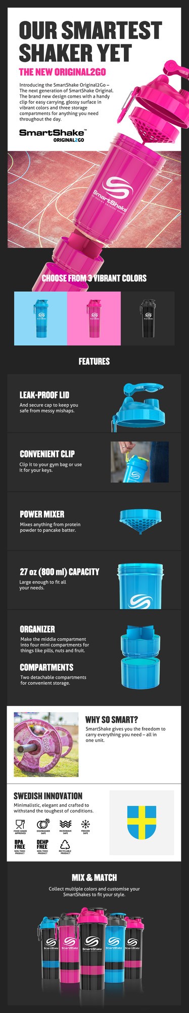 Smartshake Original 2Go är för dig som önskar en shaker av högsta kvalitet, som samtidigt är mycket praktisk.