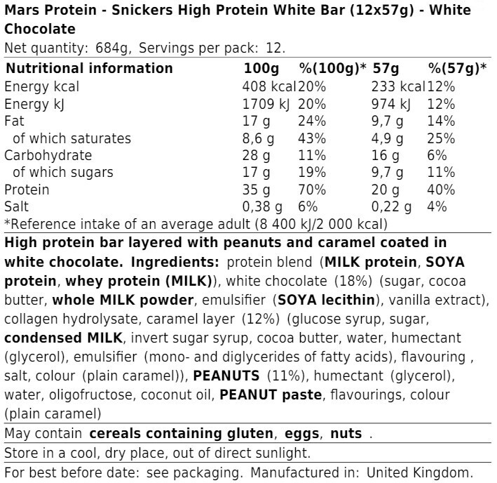 Är du på jakt efter en läcker och näringsrik proteinbar? Så leta inte längre! Snickers High Protein White bar smakar som en snickersdröm.