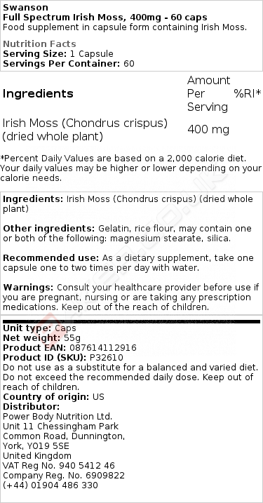 SWANSON FULL SPECTRUM IRISH MOSS, 400MG - 60 CAPS