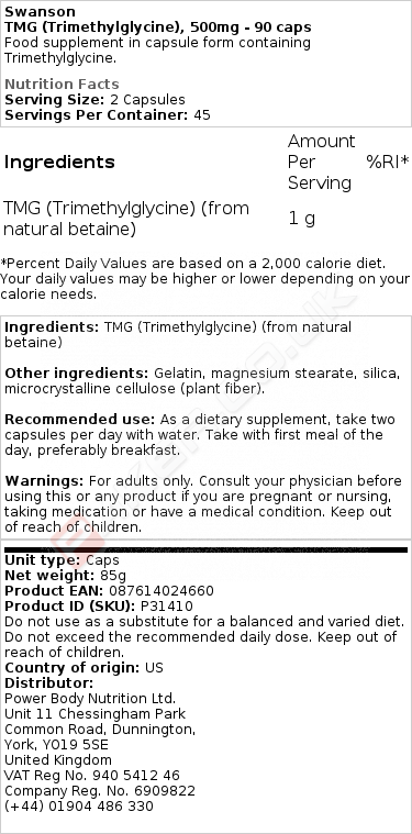 SWANSON TMG (TRIMETHYLGLYCINE), 500MG - 90 CAPS