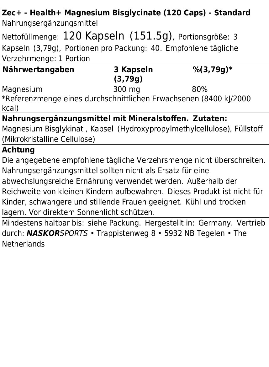 ZEC+ HÄLSA+ MAGNESIUMBISGLYCINAT (120 KAPSLAR)