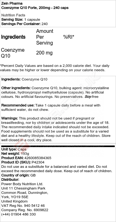 ZEIN COENZYME Q10 FORTE, 200MG - 240 KAPSLAR