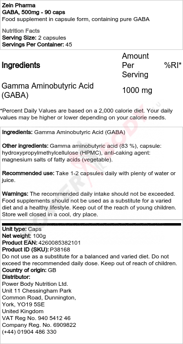 ZEIN GABA, 500MG - 90 CAPS