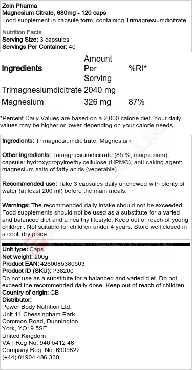 ZEIN MAGNESIUM CITRATE, 680MG - 120 CAPS