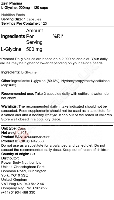 ZEIN L-GLYCINE, 500 MG - 120 KAPSLAR