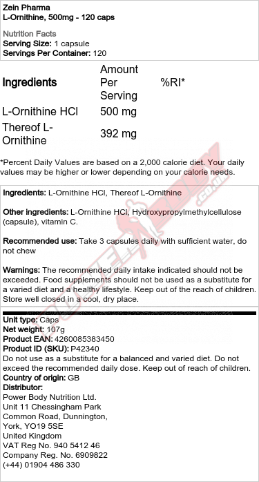 ZEIN L-ORNITHINE, 500MG - 120 CAPS