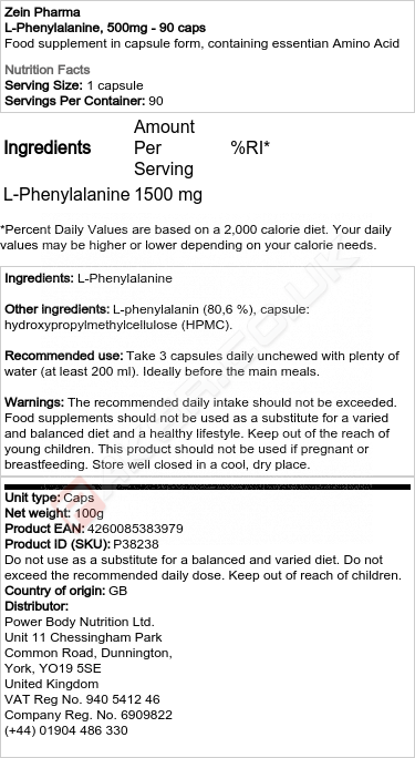 ZEIN L-FENYLALANIN, 500MG - 90 KAPS