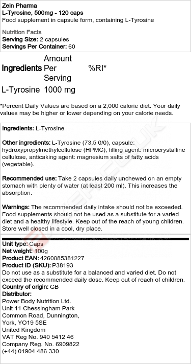 ZEIN L-TYROSINE, 500MG - 120 KAPS