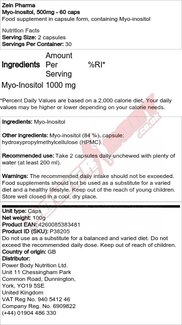 ZEIN MYO-INOSITOL, 500MG - 60 KAPSLAR