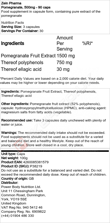ZEIN POMEGRANATE, 500MG - 90 CAPS